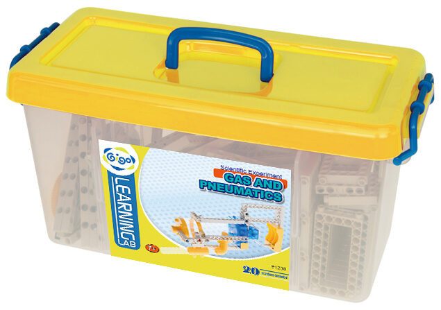 Gigo 1238 Gas en pneumatiek. Kinderen kunnen de mysteries van luchtkracht ontdekken door gebruik te maken van de luchtkracht onderdelen en luchtblazer van Gigo. Ze kunnen vacuum modellen, een luchtboot en andere voertuigen bouwen. Vanaf 7 jaar.