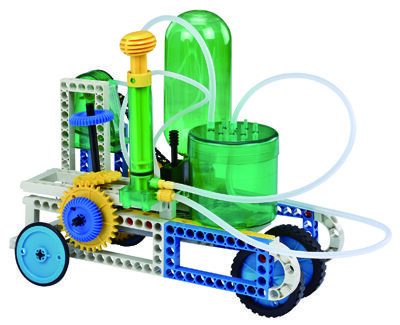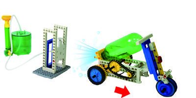 Gigo 7077 Waterkracht. Vanaf 8 jaar. Water is een krachtbron die vele technische mogelijkheden biedt. Met deze set en de handleiding met bouwvoorbeelden voor 15 modellen kan geleerd en geëxperimenteerd worden met door waterkracht aangedreven modellen. Een leuk voorbeeld is de raketauto, als alternatief voor de waterraket. Door het water met veel of weinig druk op spanning te brengen, kun je experimenteren wat het effect is op de afstand die de auto dan aflegt.
