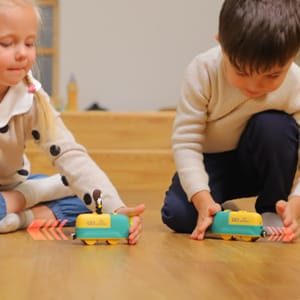 Direction Control: plak de stickers op de track om Coding Express te vertellen waar hij heen moet