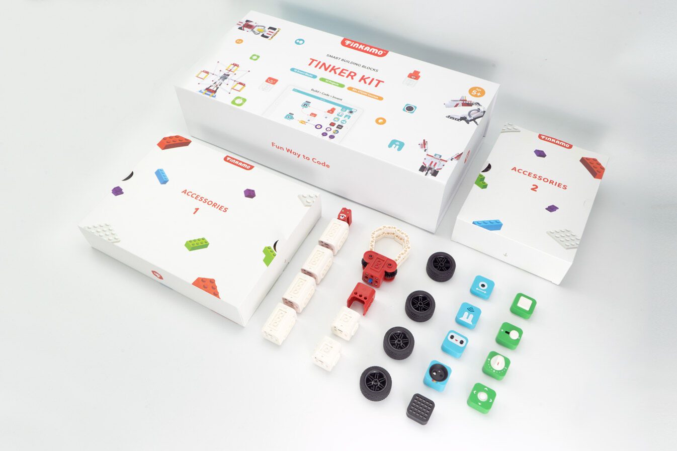• Tinkamo Tinker Kit bevat Smart Building Blocks en is een  STEAM-roboticaset voor jongens en meisjes vanaf 4 jaar. Het bevat 10 projecten van beginner tot expert, 600 bouwstenen, 14 slimme bouwstenen, 10 out-of-box projecten en 30+ STEAM-cursussen.